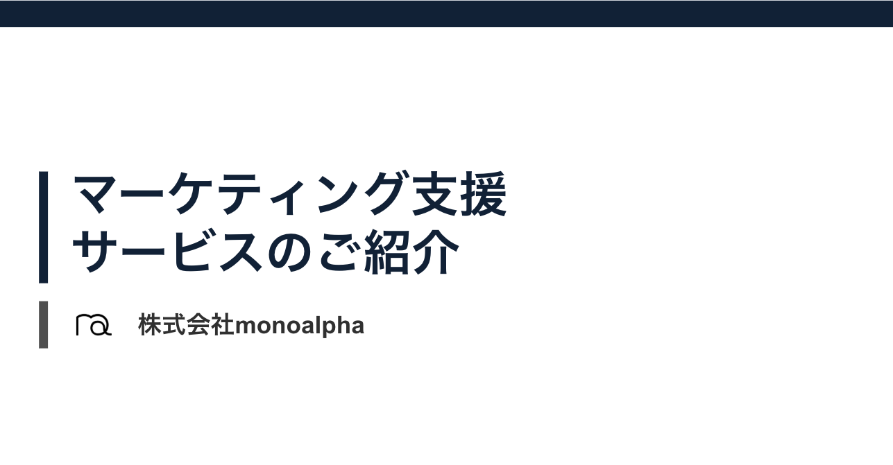弊社のマーケティング支援サービス「monoalpha」の強み、具体的な支援内容、導入事例、料金プランなどを